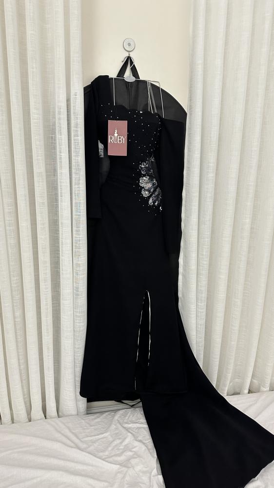 - الأكمام: طويلة وشفافة، مزينة بتطريز أو دانتيل يمتد على طول الذراعين.