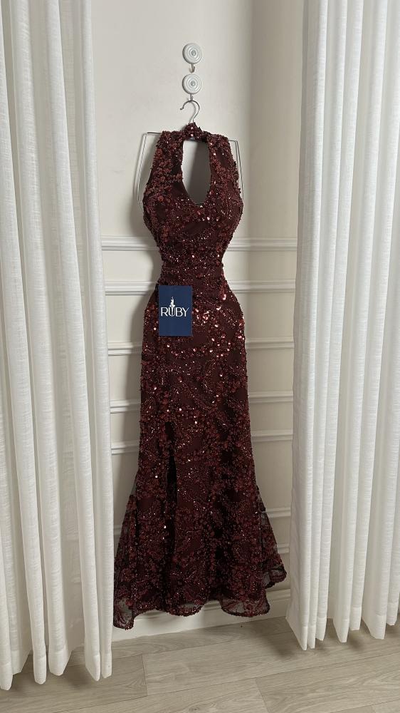 - اللون الأحمر الغامق (العنابي أو الخمري) يمنح الفستان مظهراً أنيقاً وجذاباً ومناسباً للمناسبات المسائية والسهرات.
