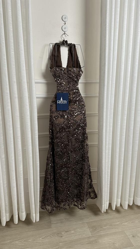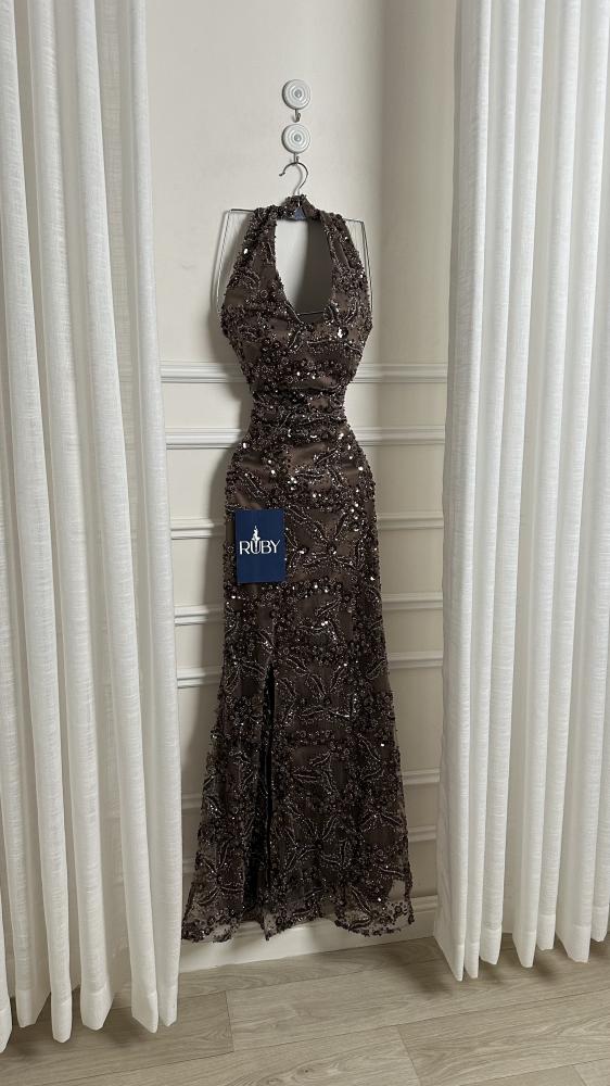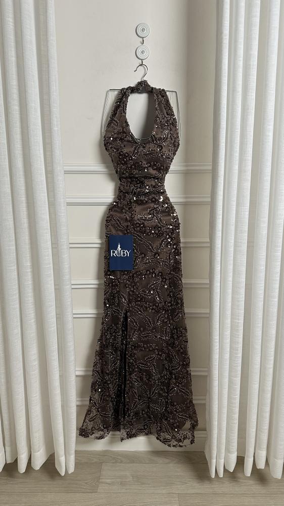 - الياقة: ياقة هولتر مكشوفة الأكتاف.