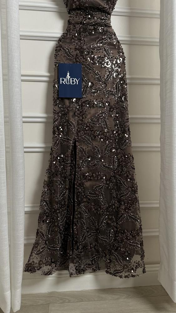- التصميم: فستان سهرة طويل، بقصة ضيقة (Bodycon) تبرز جمال القوام.