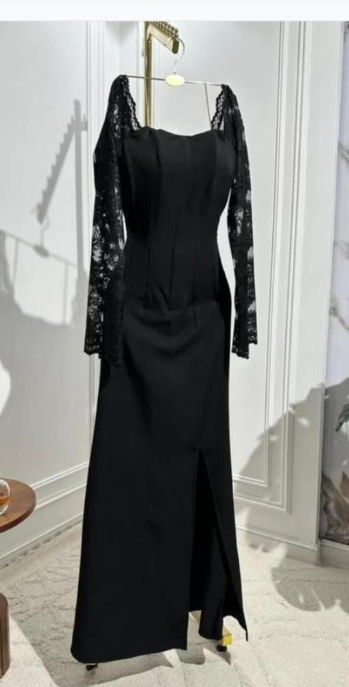 - الأكمام: يتميز بأكمام طويلة مصنوعة من قماش الدانتيل ، مما يضيف لمسة من الأنوثة والرقي.