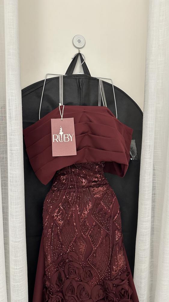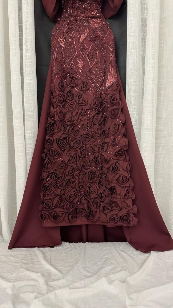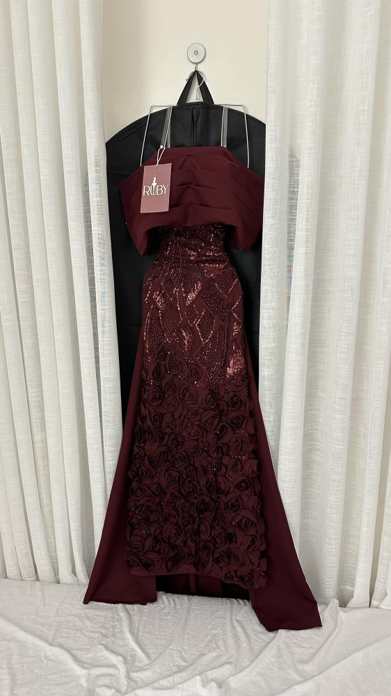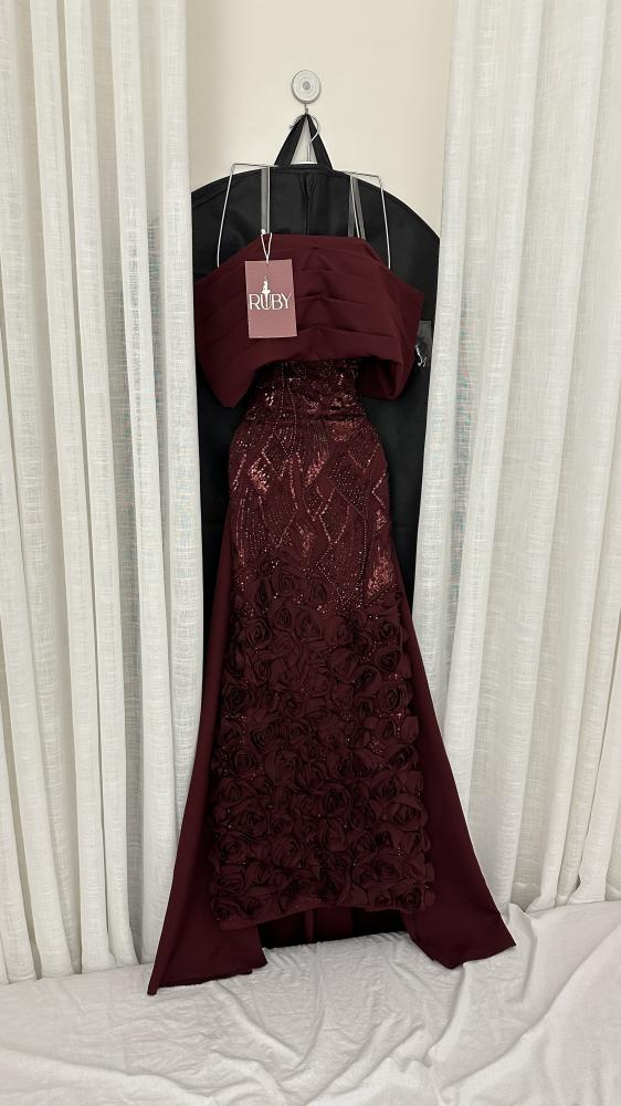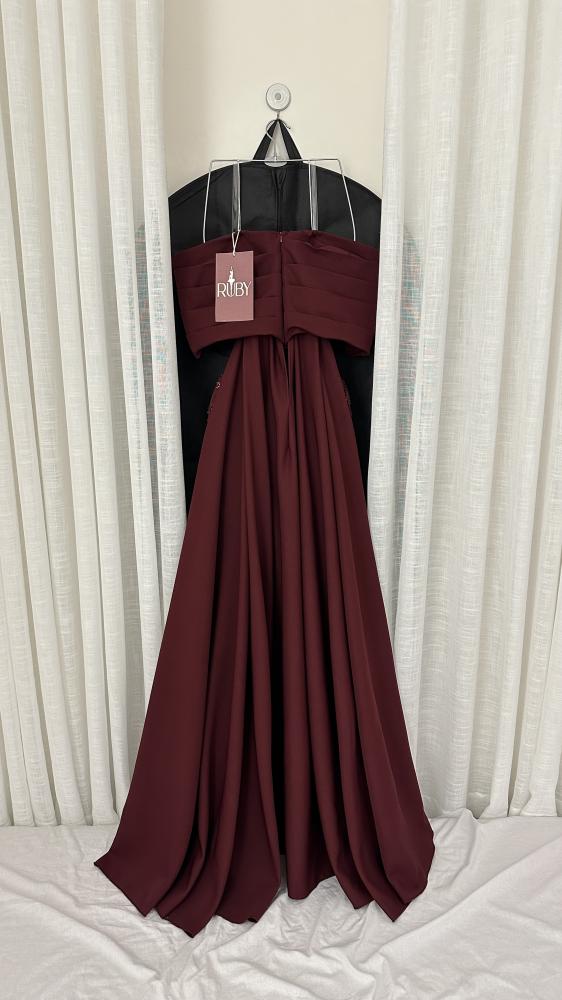 فستان سهرة طويل بلون خمري (برغندي).