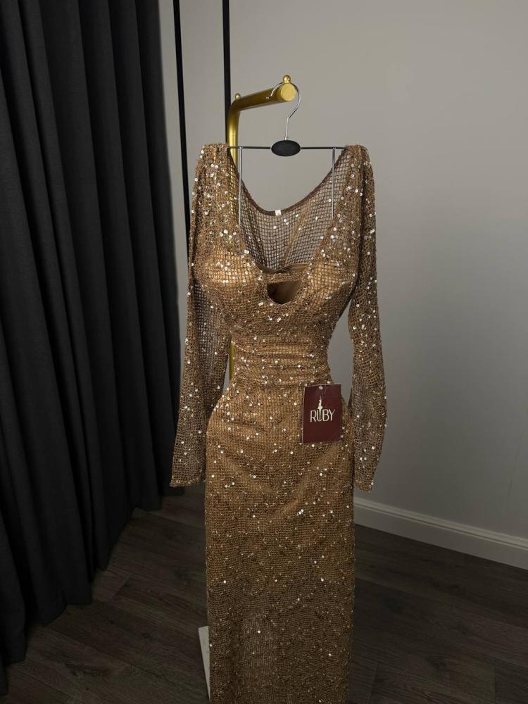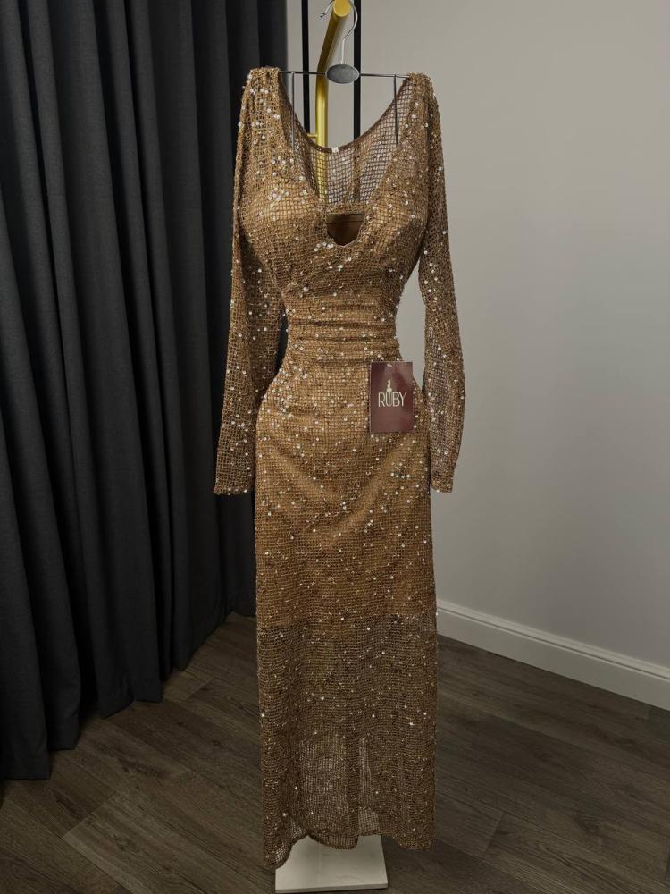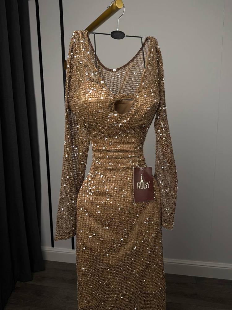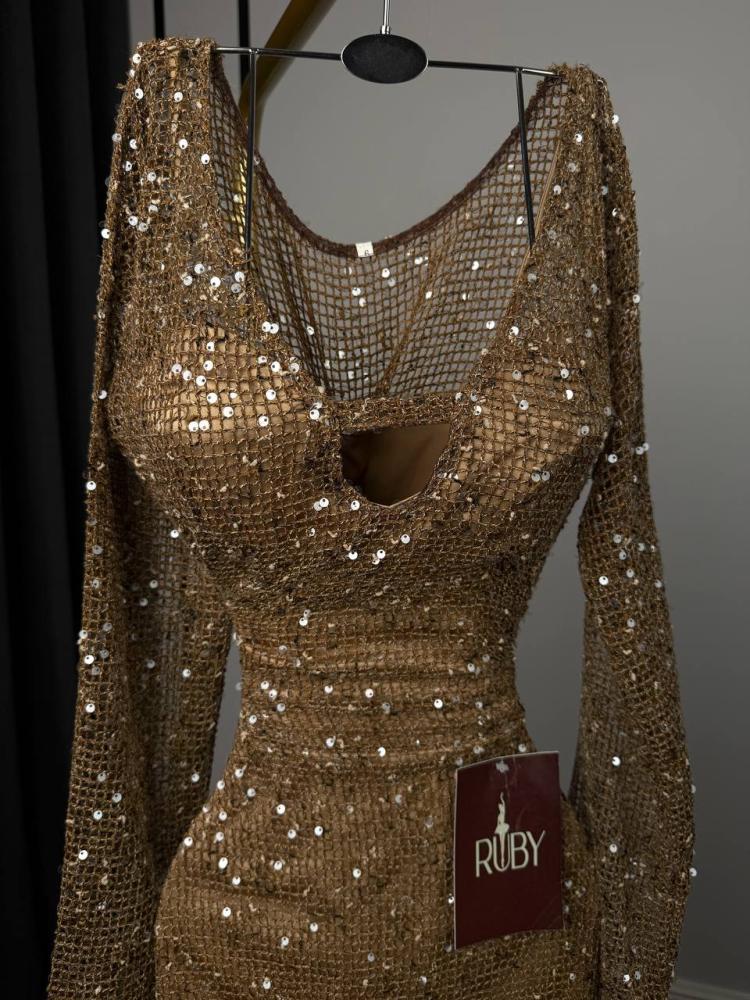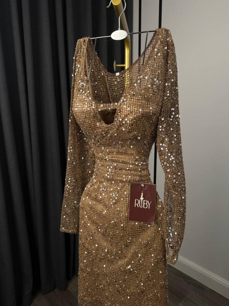 - الزخارف: مغطى بالكامل بالترتر أو التطريز اللامع، مما يمنحه مظهراً براقاً ومزيناً [4، 5].