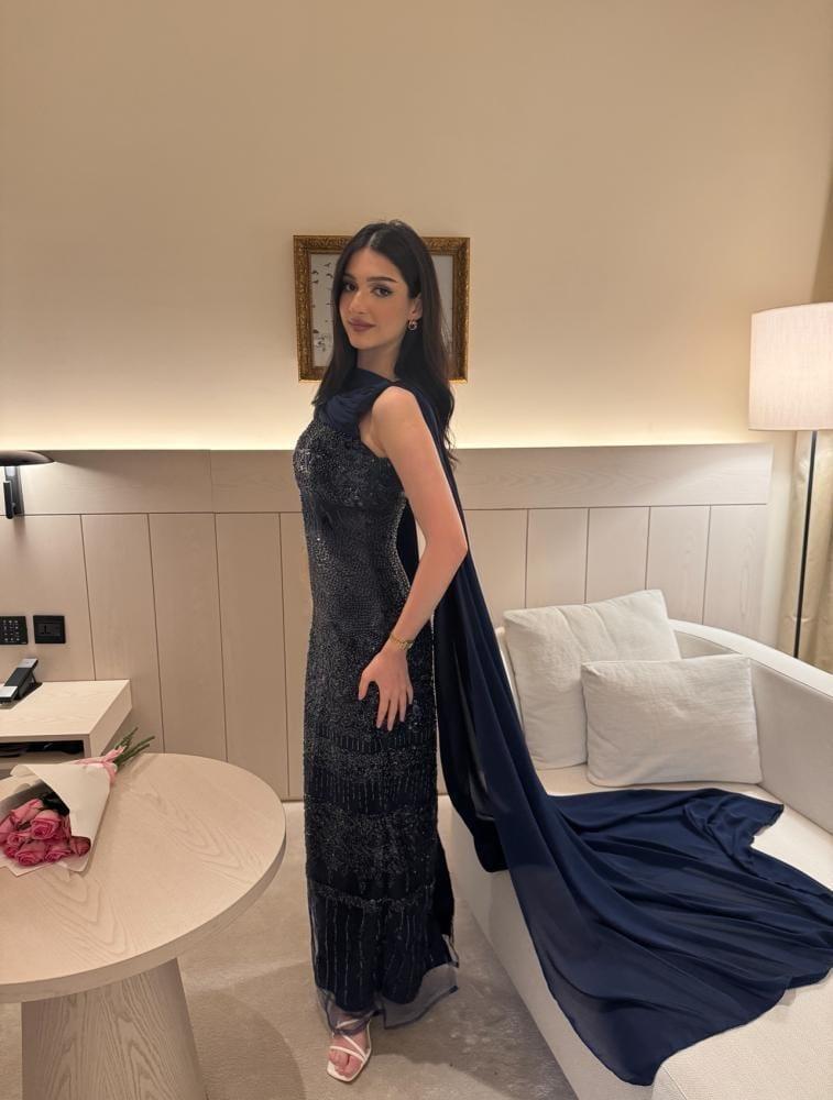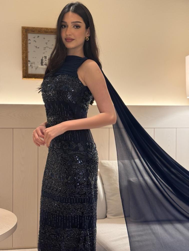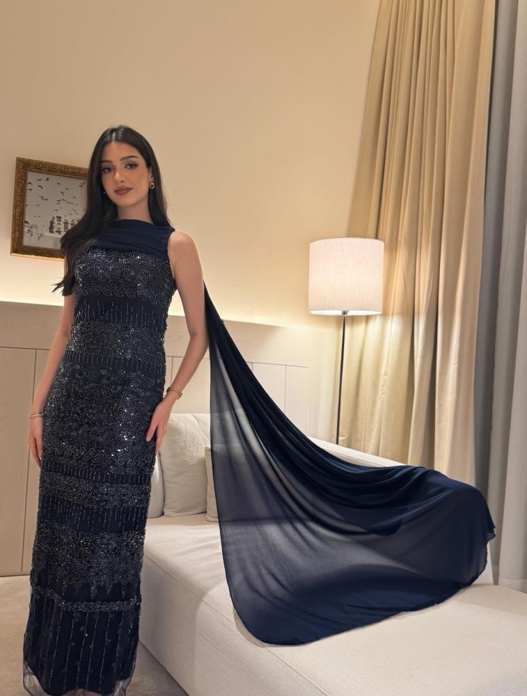 - الطول: طويل حتى الأرض، مناسب للسهرات الرسمية.