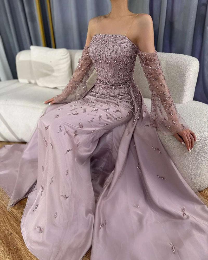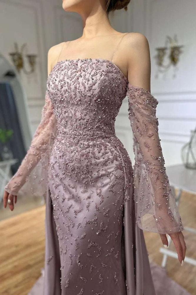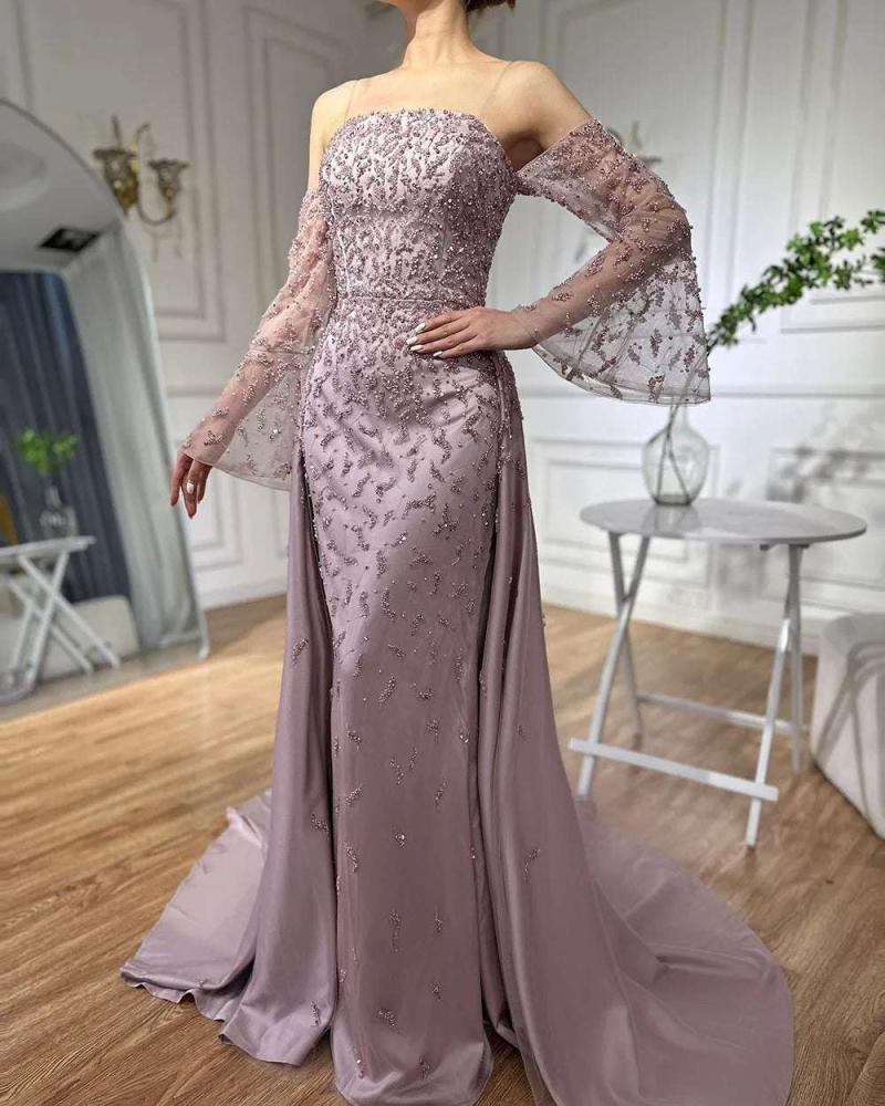 - التفاصيل الخلفية: الذيل ممتد، ويضفي مظهرًا دراميًا مثاليًا للحفلات والسجاد الأحمر.