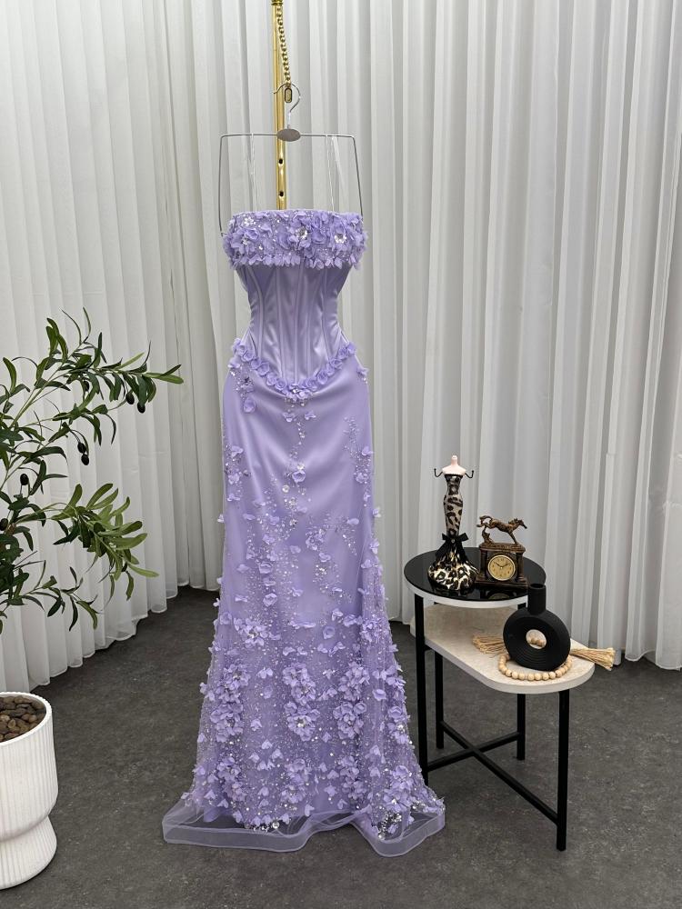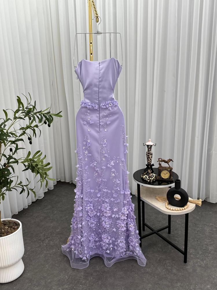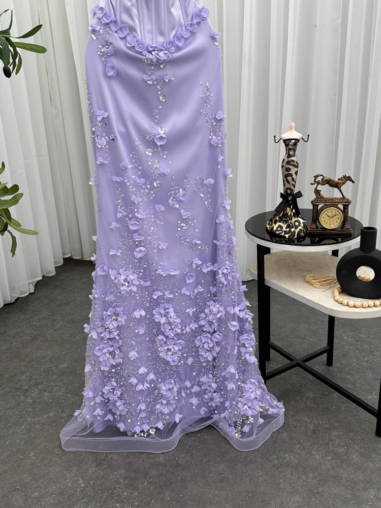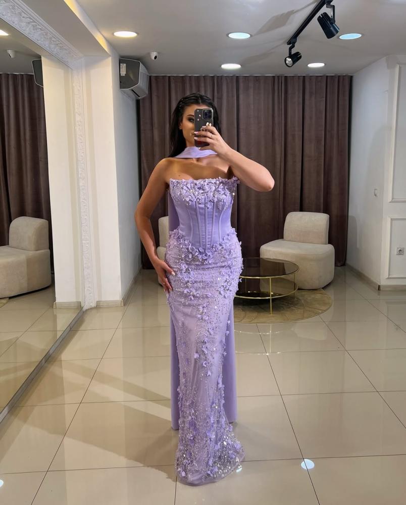 - الفستان أنثوي للغاية، يجمع بين الأناقة الكلاسيكية واللمسة العصرية بفضل التطريز اليدوي والزخارف ثلاثية الأبعاد.