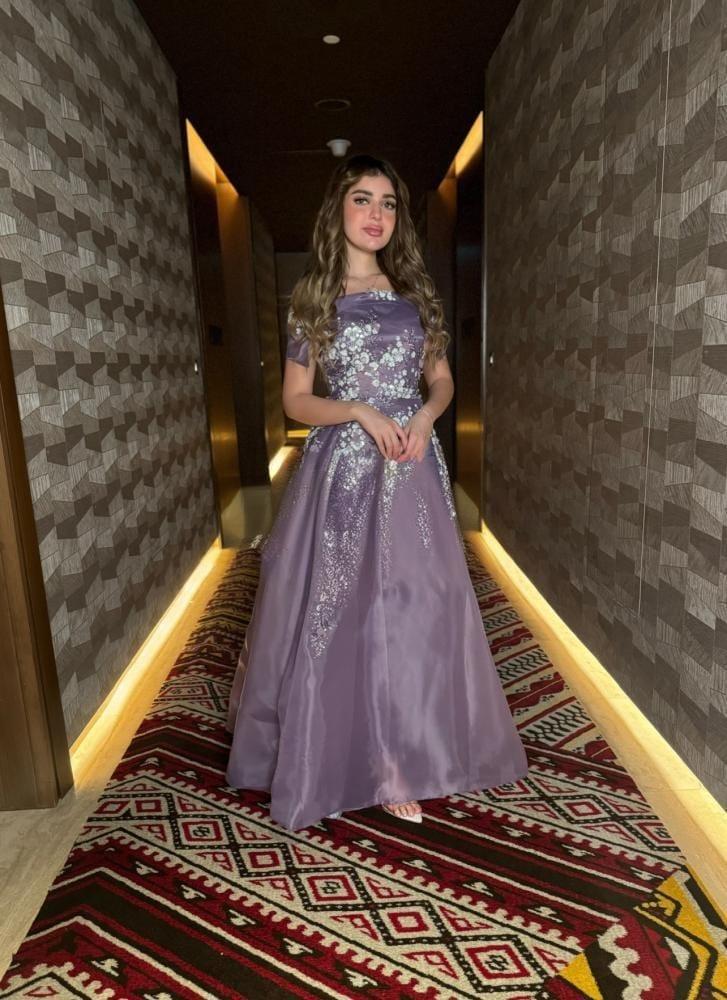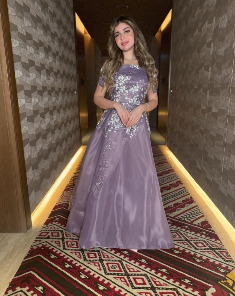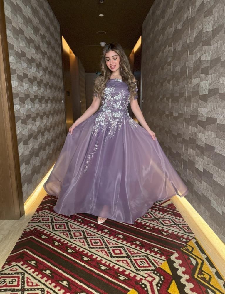 - 💜 وصف الفستان:اللون: بنفسجي فاتح (ليلكي ناعم).