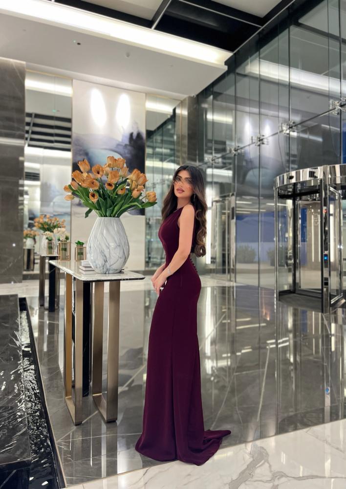 - اللون: باللون العنابي الداكن (Burgundy)، لون غني يعكس الفخامة ويليق بالسهرات والمناسبات الرسمية.