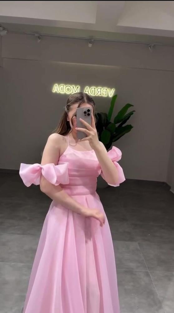 - الطول: الفستان طويل يصل إلى الأرض، مما يجعله مناسبًا للمناسبات الرسمية مثل حفلات الخطوبة، الأعراس، أو حفلات التخرج.