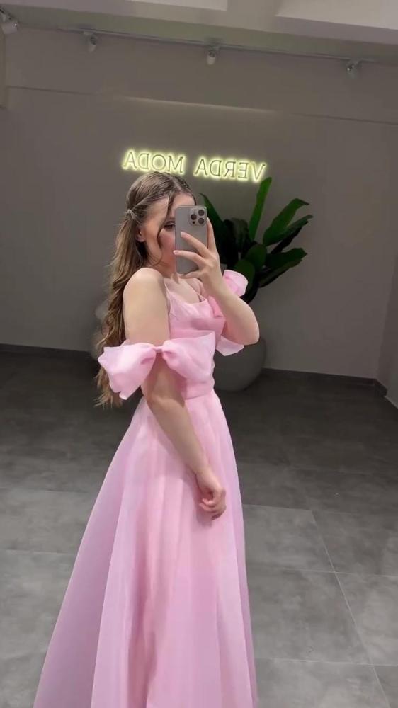 - القماش: مصنوعًا من الشيفون أو الأورجانزا، وهي أقمشة خفيفة وشفافة تضيف طابعًا أنثويًا وناعمًا.